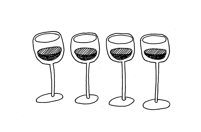 Vi börjar med att â pĂ„ löpande band â fĂ„ in en, tvĂ„, tre, fyra, fem sĂ„ kallade amuse bouche, alltsĂ„ smĂ„ aptitretare. Det var â i tur och ordning: ostpuffar/smĂ„bröd, lĂ€tt friterade rĂ€kor med pepparpulver, en mini-ceviche med en liten bit makrill, en liten skĂ„l buljong med hallon och kryddblad, och en vit fisk med ris och blĂ€ckfisksblĂ€ck. Till dessa aptitretare fick vi att dricka (namn, Ă„rgĂ„ng, druva och producent):